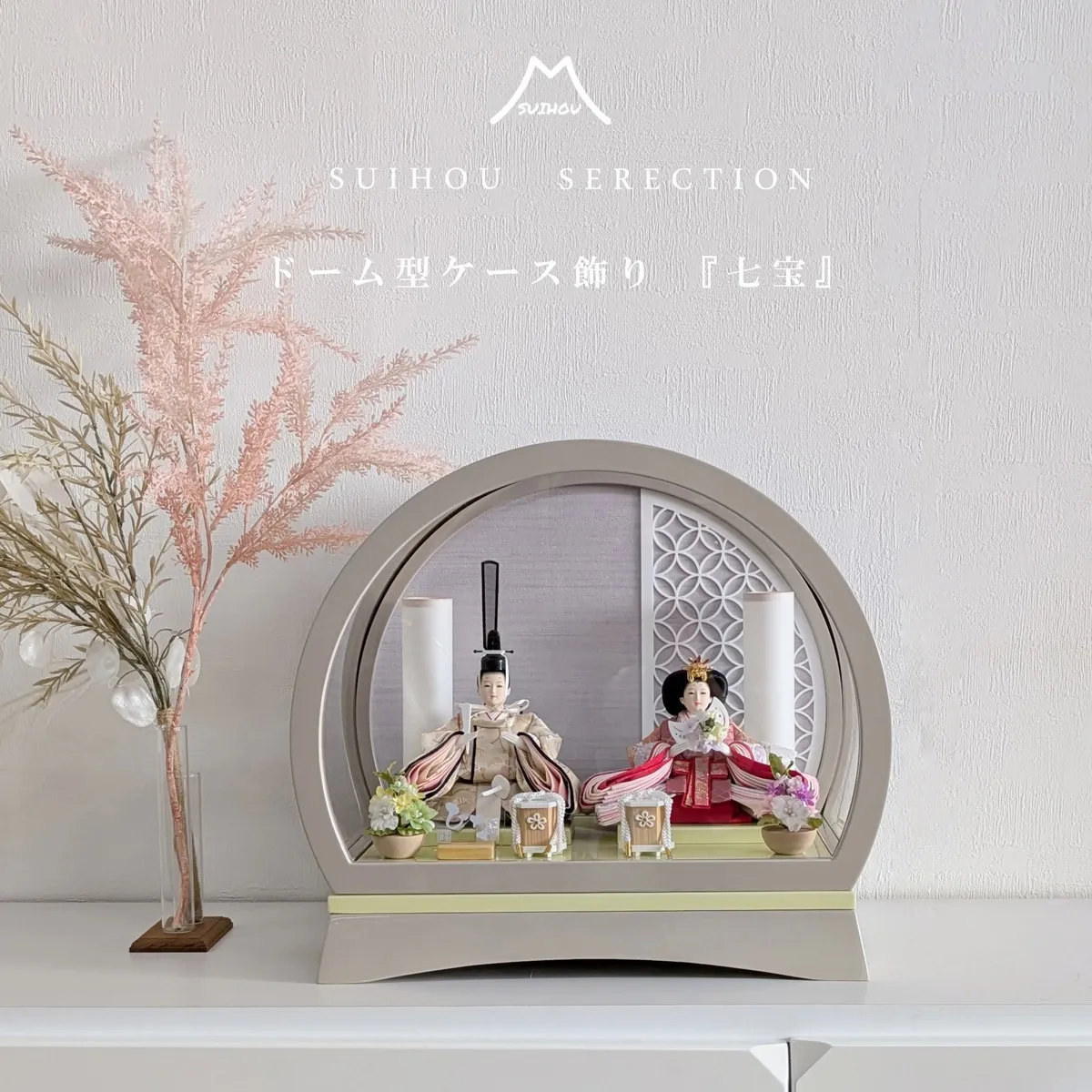 ケース飾り ドーム型 ~ナチュラル~ ドーム型~ナチュラル~当店通常価格88,000円(税込96,800円)SALE79,800円(税込87,780円)(割引対象外商品)(名前旗は別売りです。)飾り台サイズ間口42×奥行28×高さ38cmドーム型のケース飾り。どんな…