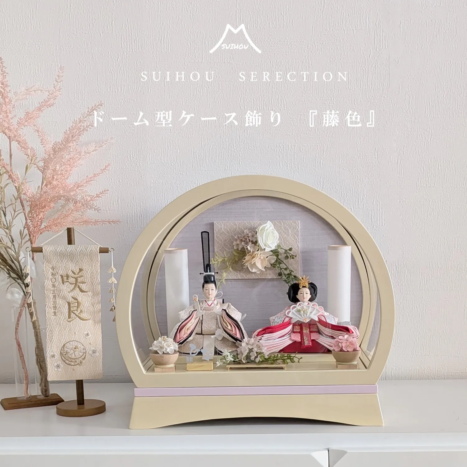 ケース飾り ドーム型 ~藤色~ ドーム型~藤色/ベージュ~当店通常価格88,000円(税込96,800円)SALE79,800円(税込87,780円)(割引対象外商品)(名前旗は別売りです。)藤色(ふじいろ)とは、藤の花からきた色名で淡い青みのある紫色…