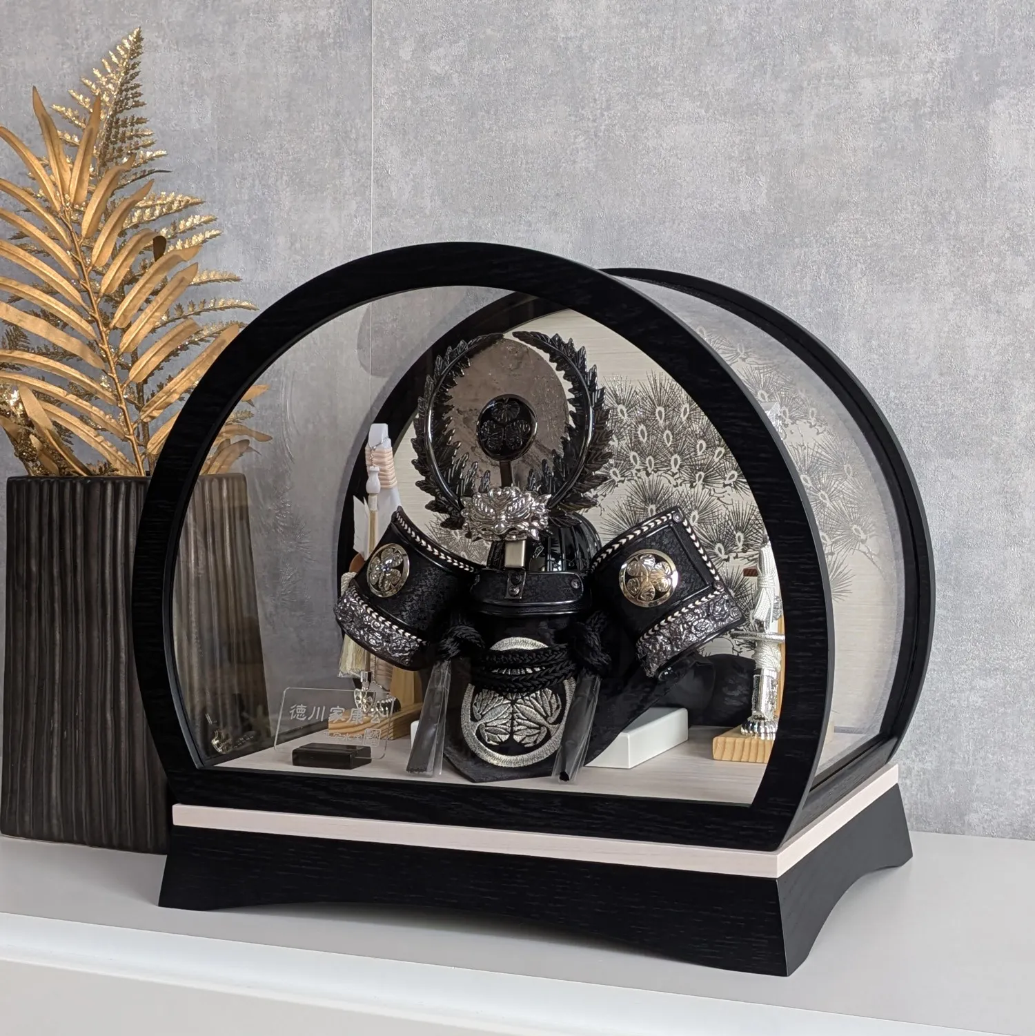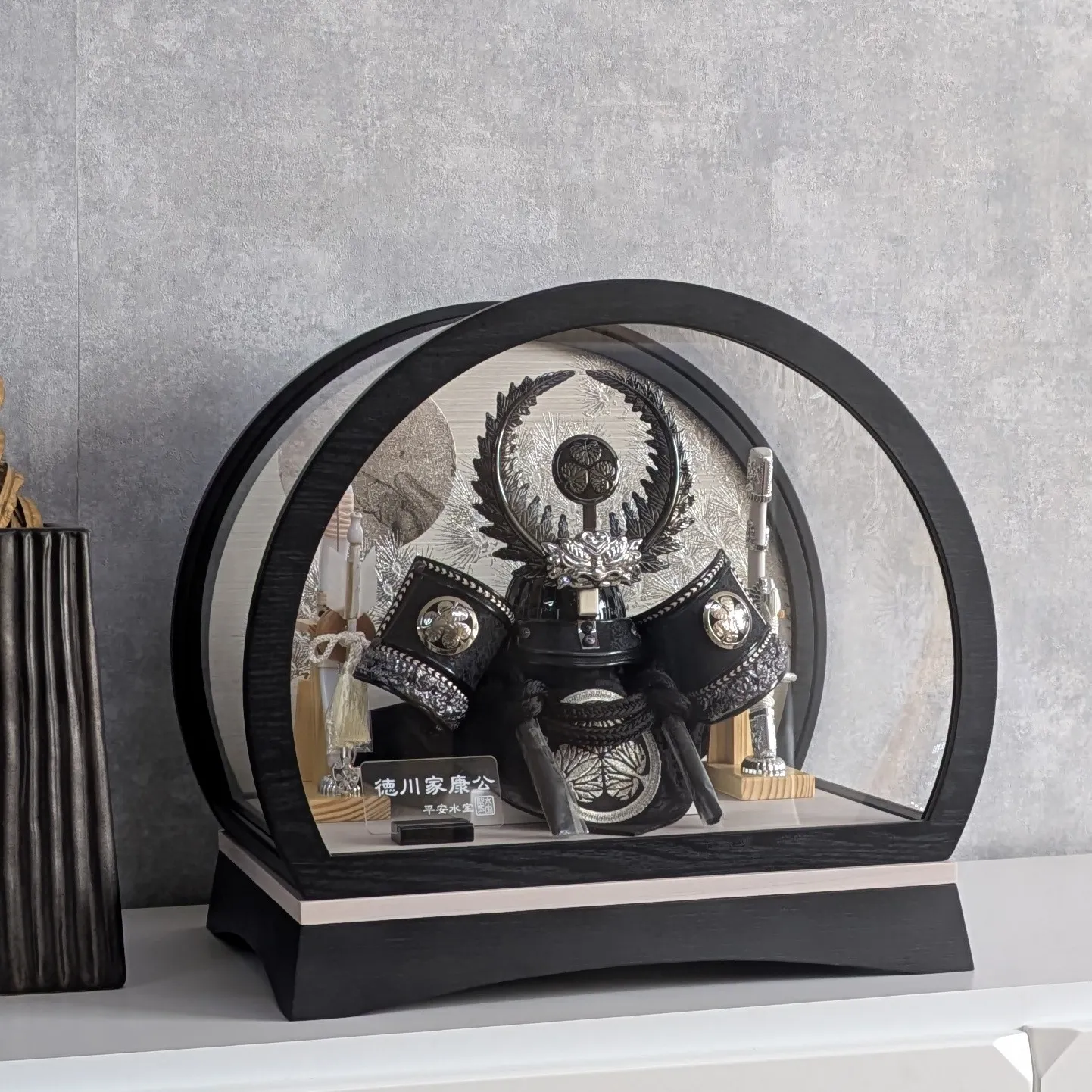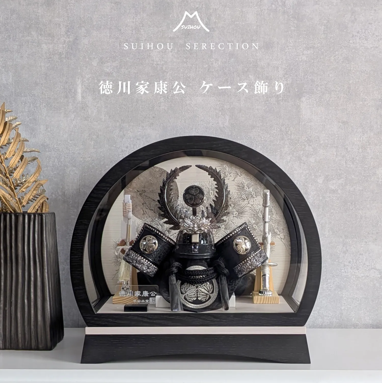 ケース飾り ドーム型 8号 徳川家康兜 黒