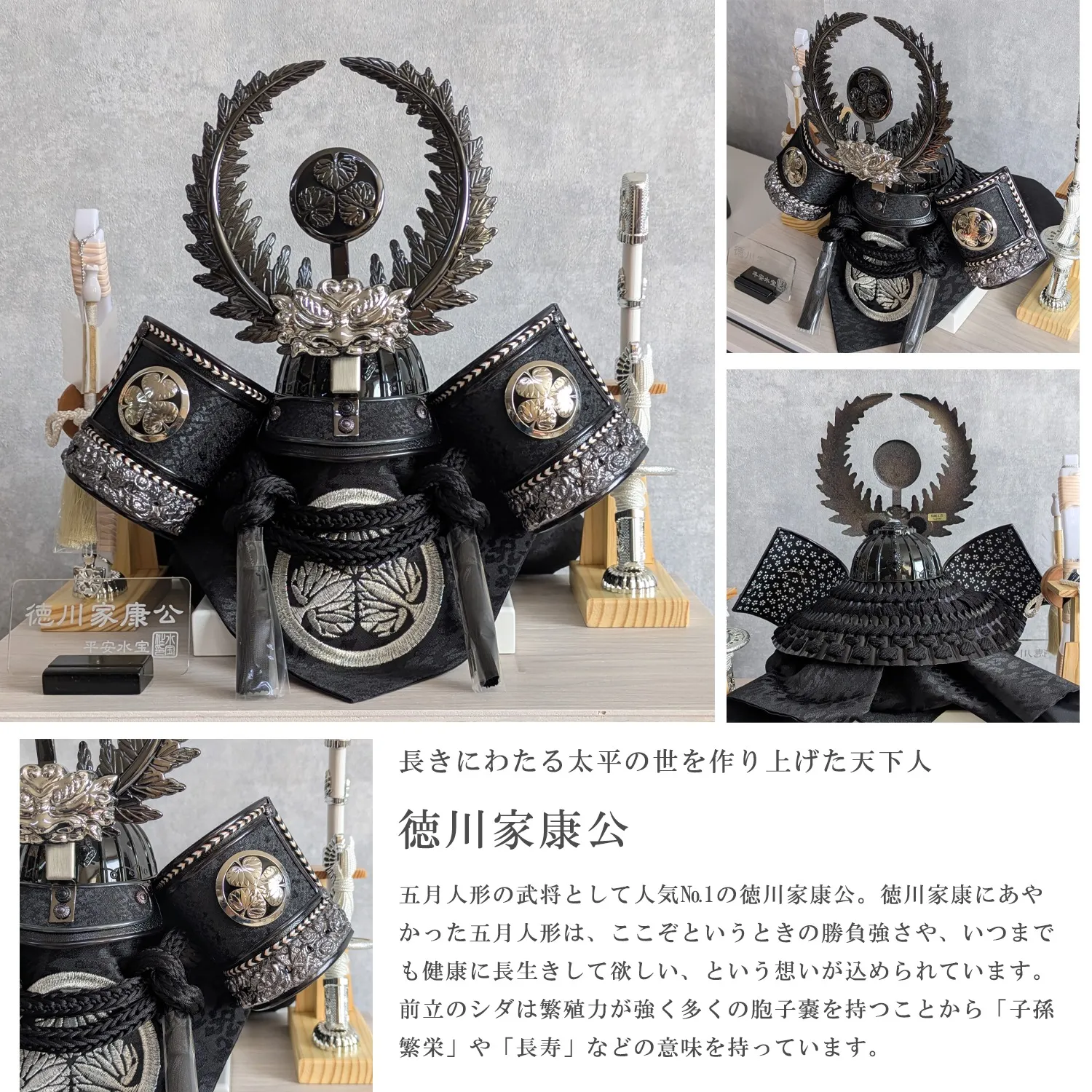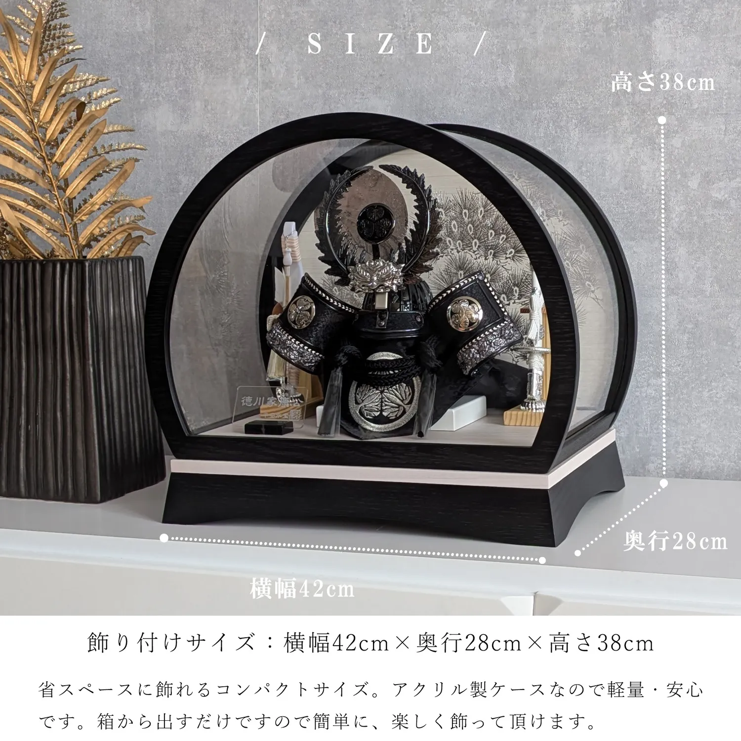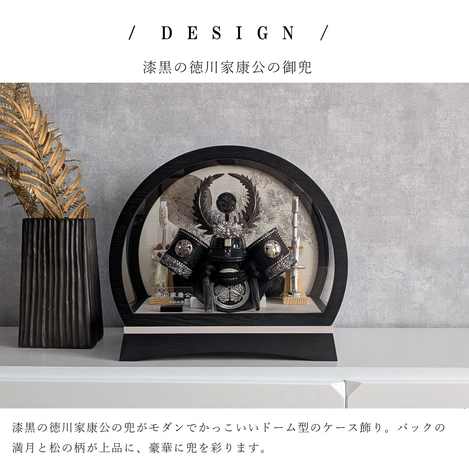 ケース飾り ドーム型 8号 徳川家康兜 黒