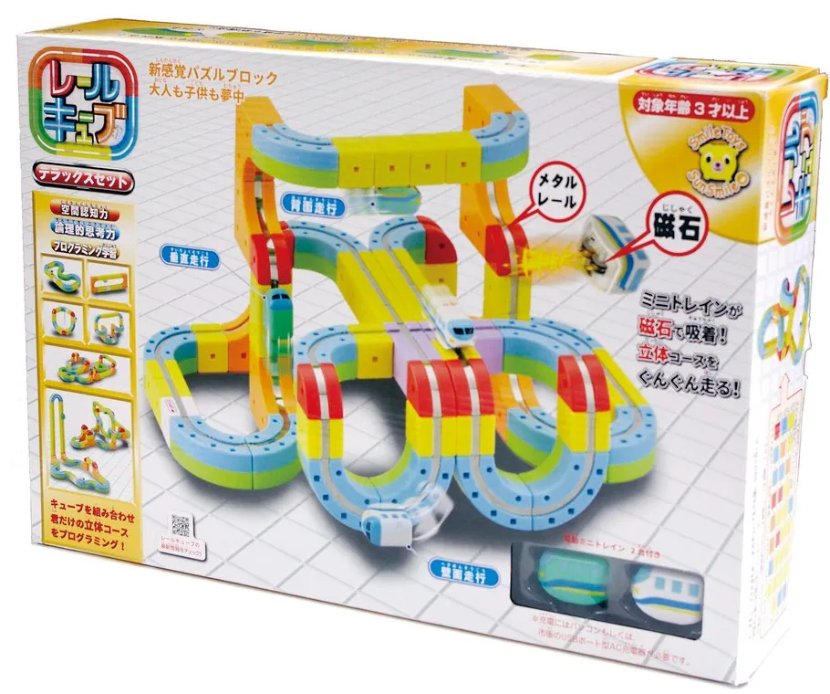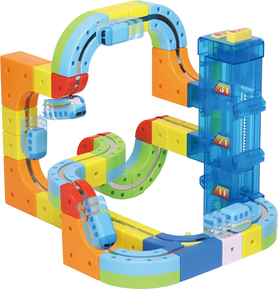 組み立てられ、専用のミニトレインを走らせて遊べる知育トイです。